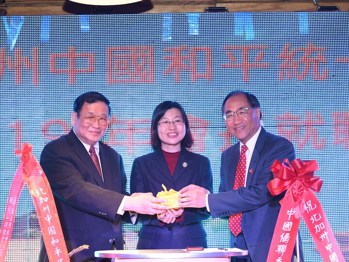 北加州中國和平統一促進會日昨舉行了2019年會長就職典禮。在中國駐舊金山副總領事鄒永紅見證下,中國僑聯海外顧問戴錡接棒原會長鄒志強,成為新一屆會長。